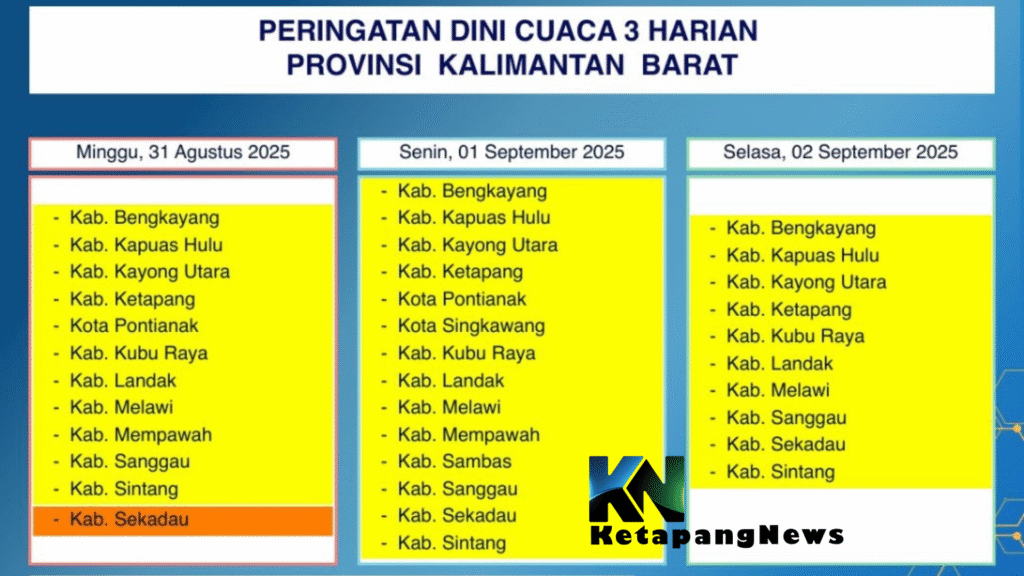 BMKG Kalbar Rilis Peringatan Dini 31 Agustus–2 September 2025: Hujan Meluas, Warga Diminta Waspada
